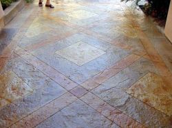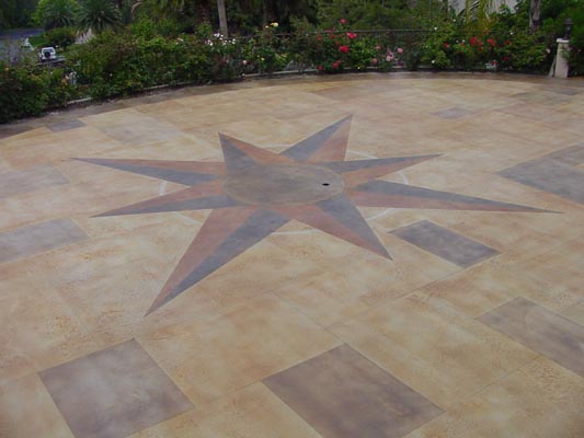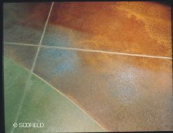 Glatte Betonflächen, ob alt oder neu, können mit einer speziellen Farbe verschönert werden. Die Fläche wird anschließend mit Klarlack UV-beständig und abriebfest beschichtet.